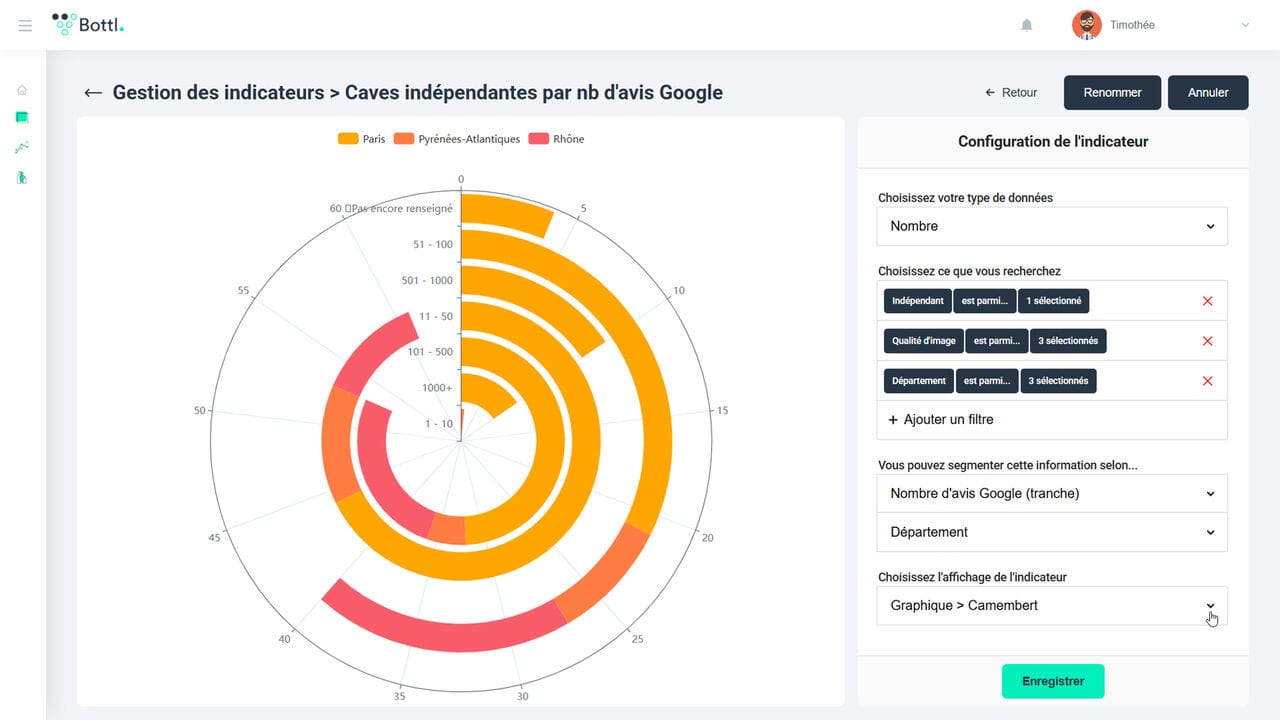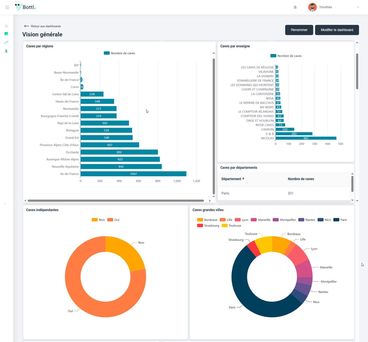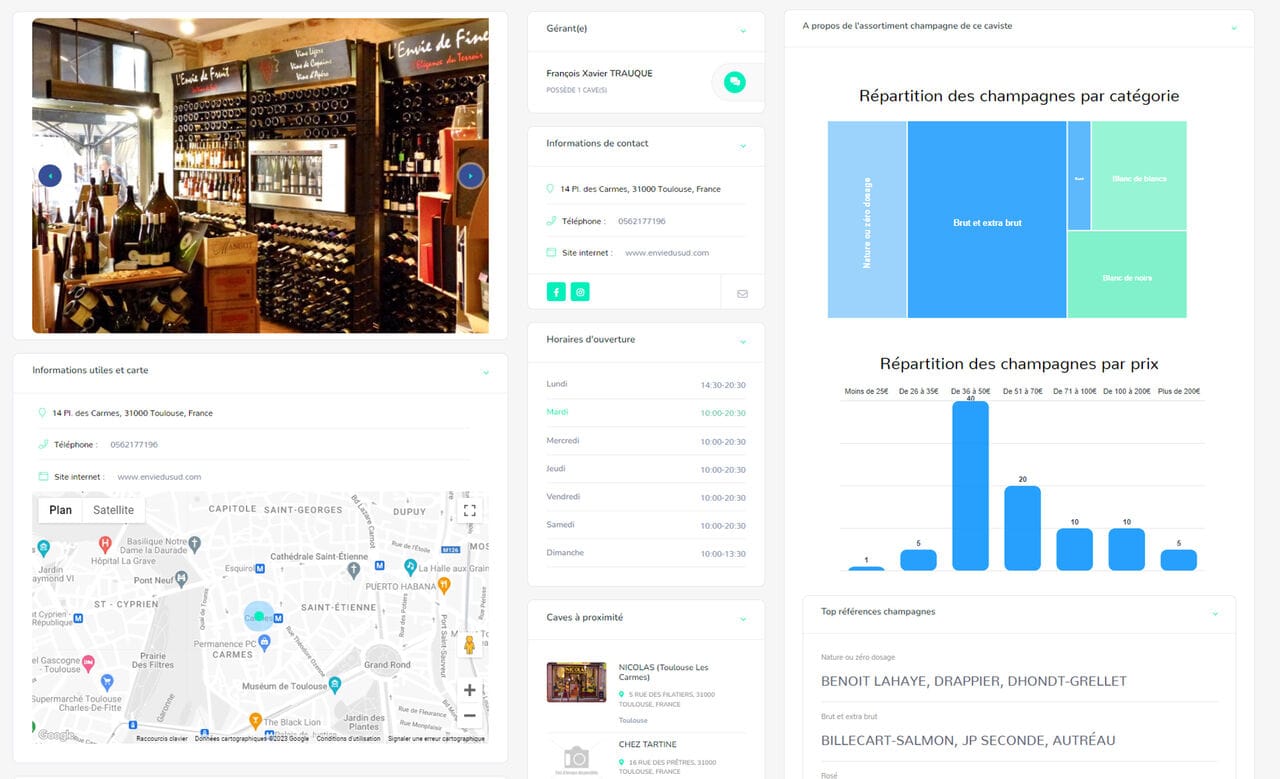 “Tout est imaginable. Je peux suivre le nombre de caves par département ; le nombre de caves indépendantes à Paris ou Besançon ; ou bien le nombre de caves premium en réseau à Lyon qui ont un compte instagram. La plateforme permet une exploitation illimitée des données disponibles. C’est incroyable.”