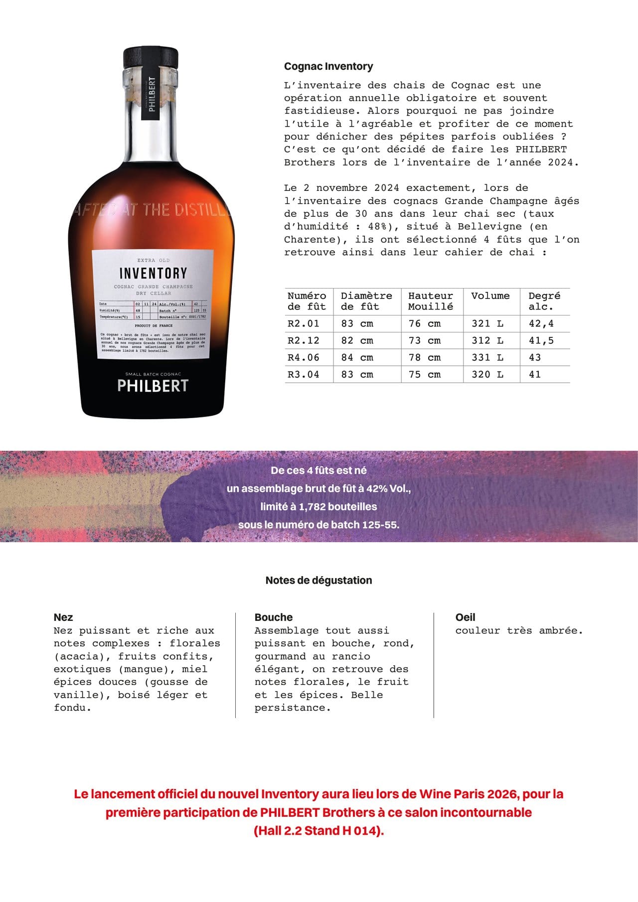 Le lancement officiel du nouvel Inventory aura lieu lors de Wine Paris 2026, pour la première participation de PHILBERT Brothers à ce salon incontournable (Hall 2.2 Stand H 014).
