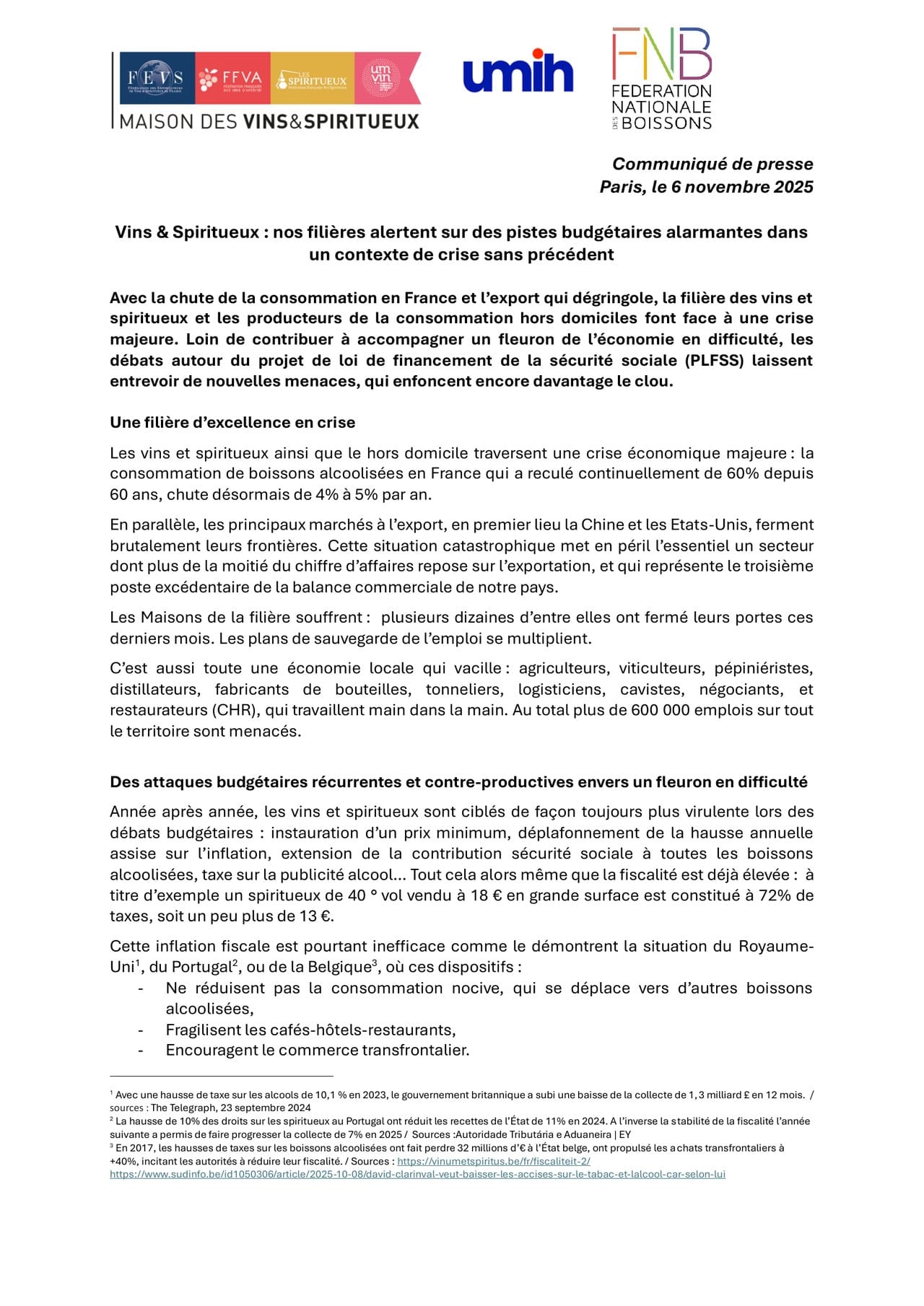 Vins & Spiritueux : nos filières alertent sur des pistes budgétaires alarmantes dans un contexte de crise sans précédent